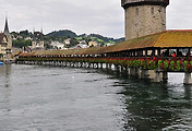 낮에 다시 찾은 카펠교. 밤에 본 낭만적인 분위기의 카펠교와는 사뭇 다른 모습입니다. 밤에 카펠교를 봤을 땐 분위기에 취해서인지 들보 위에 그려져 있는 그림들 한 장 한 장이 지니는 의미도 생각해 보게 되는 것 같고, 꽃으로 장식된 난간을 보며 왠지 모르게 사랑에 빠져야 할 것 같았는데 말이죠. 낮에 보니 그저 오래된 나무로 만든 무미건조한 흔한 다리처럼 느껴지더라구요. 감성이 무뎌져서 그런 건지도 모르겠습니다만..ㅎㅎ
